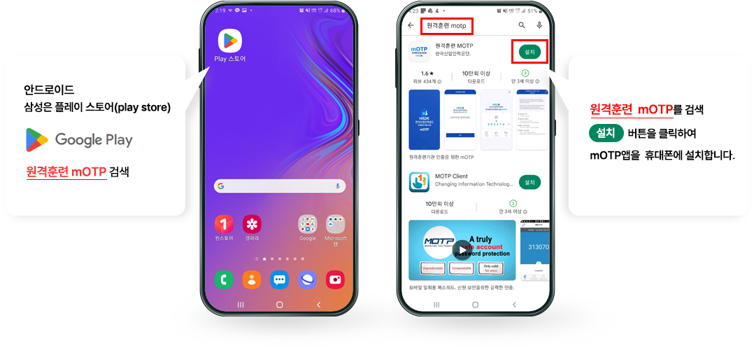 사용하는 휴대폰(스마트기기한정)에 따라 삼성은 플레이 스토어(play store), 애플은 앱스토어(App store)에서