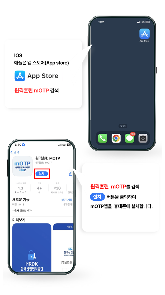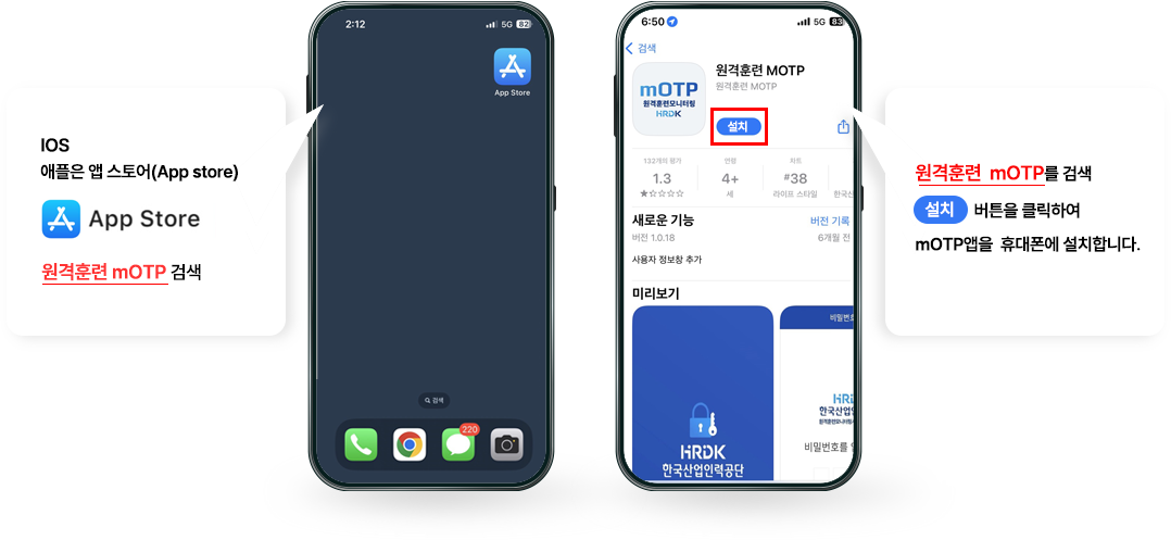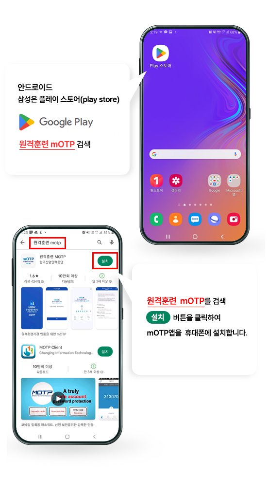㈜더화인인재개발원에서는 산업인력공단에서 배포하는 mOTP앱으로 본인인증을 권장드리고 있습니다.